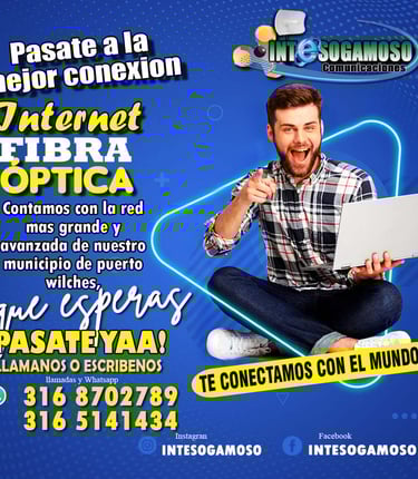 Intesogamoso Comunicaciones es una empresa colombiana dedicada a la prestación de servicios de acceso a Internet por fibra óptica, comprometida con llevar conectividad de calidad, estable y confiable a hogares, comercios y empresas de nuestra región.